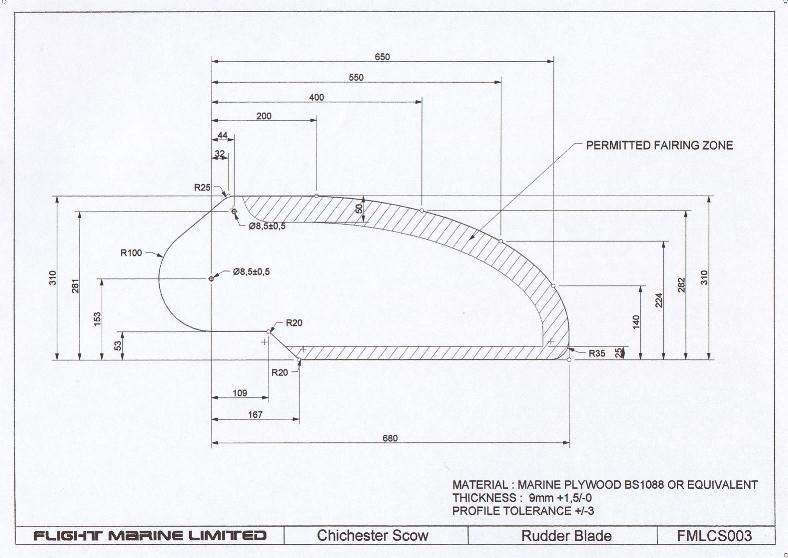 rudder drawing. The thickness of the rudder blade may be reduced only